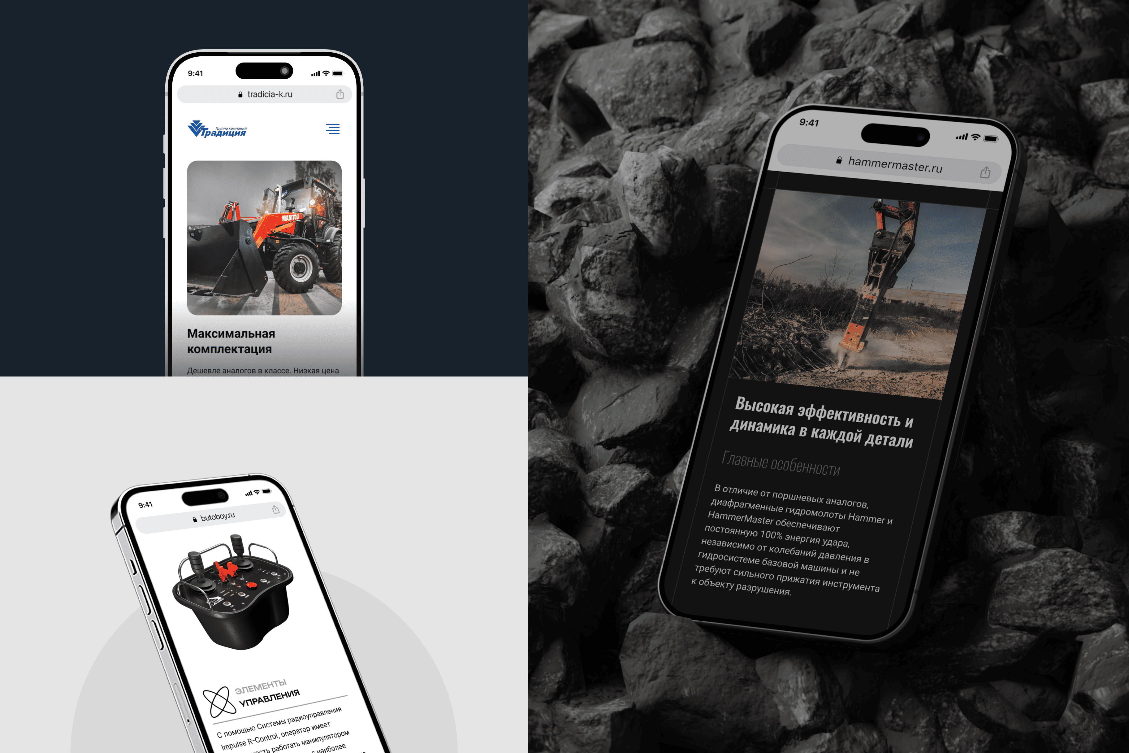 Разработка 8 лендингов и 2 сайтов, которые в дальнейшем были масштабированы до полноценных интернет-магазинов. Редизайн страниц и меню основного e-commerce проекта компании. Работы выполнены с предварительными UX-исследованиями и использованием переменных и компонентов в UI для масштабируемости.